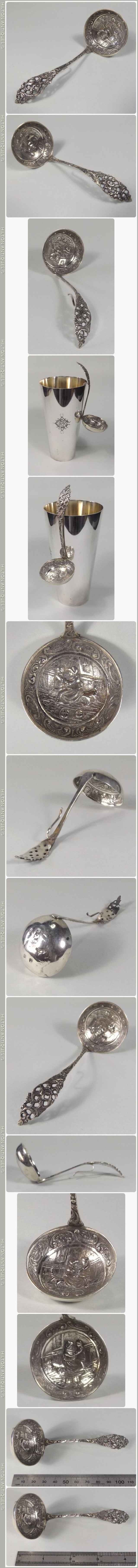 Vintage Dutch silver Sauce Ladle with figural scene and pierced handle