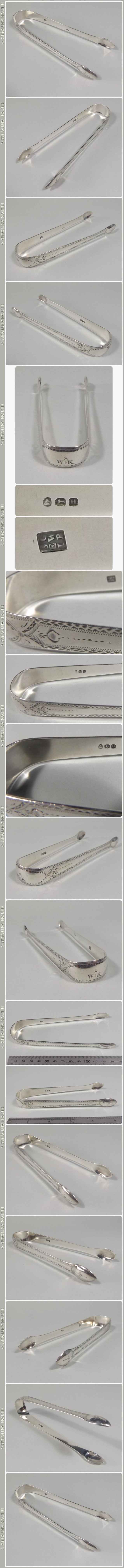 Antique English sterling silver bright cut Sugar Tongs James Boult Lon 1804