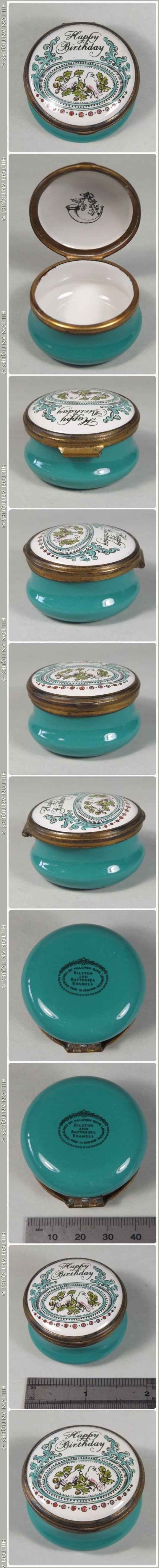 General notes on Halcyon Days Enamels. Processes may vary slightly with different items and designs. Halcyon Days Enamels are crafted from the result of many complex processes (item is handled between 50-100 times for various processes) including 3 layers of enamel, gilded or bronzed plated brass mounts, ceramic transfer lithographs and many are finished with hand painted accents in various colours, some requiring additional extra firings ensuring a unique individual item with an original Halcyon Days design. Halcyon Days Enamels holds multiple Royal Warrants.
