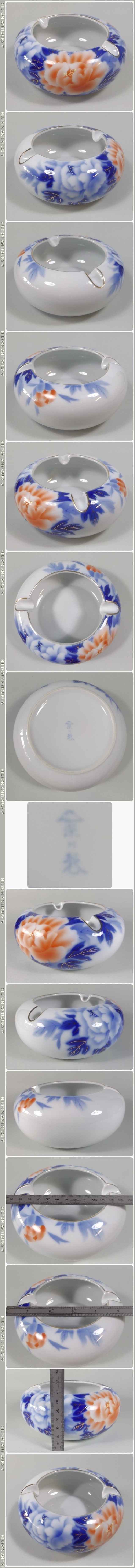 Vintage Japanese Fukagawa Porcelain Ashtray Blue and Peach Peony Flowers
