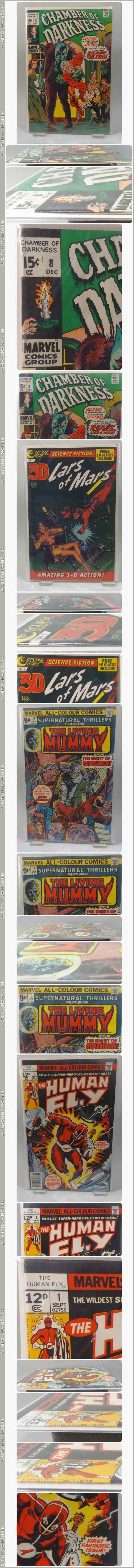 A selection of four Sci-Fi related comics inc The Human Fly Sept 1977, 3D Lars of Mars Apr 1987 includes 3D glasses, The Living Mummy Oct 1975 and Chamber of Darkness Dec 1970