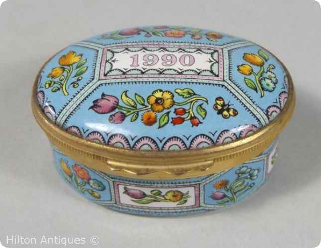 Bilston and Battersea 20th C revival box A Year to Remember 1990 5.3cm