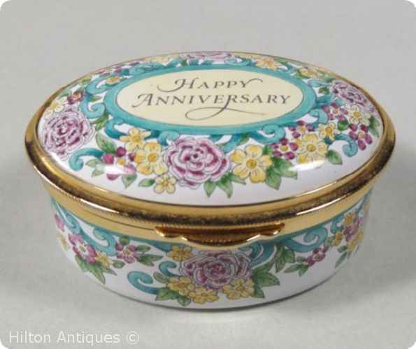 Staffordshire Enamel Box Happy Anniversary 5.3cm