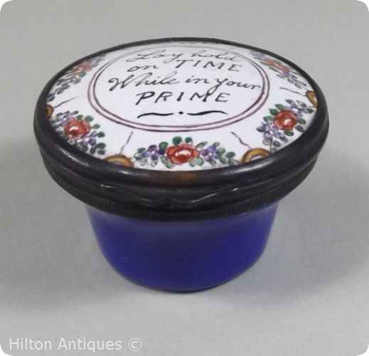 Bilston and Battersea Antique Trinket box Lay Hold on Time 18th C